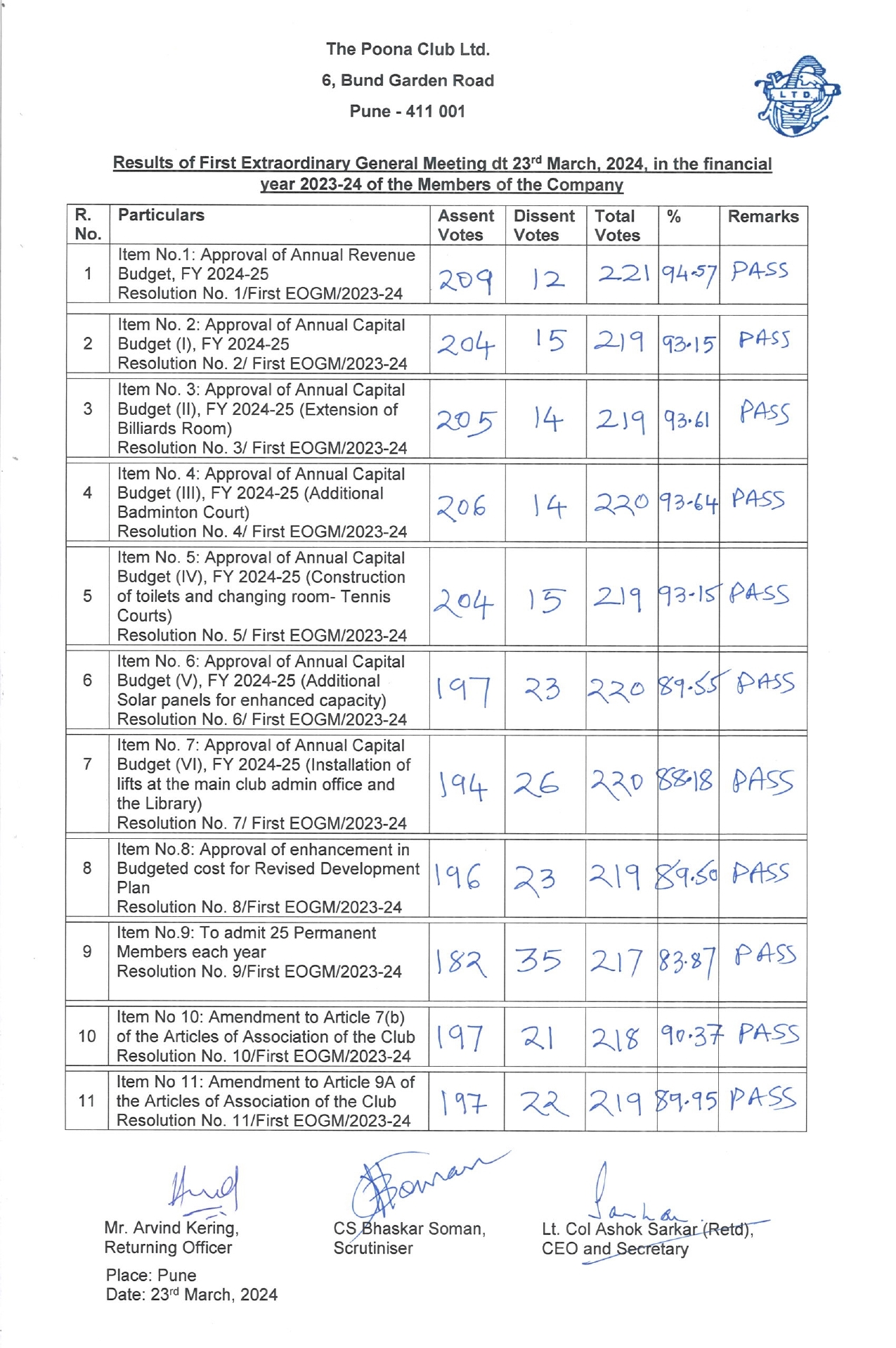 The Poona Club Ltd, is one of the oldest and most prestigious clubs in the country, has completed